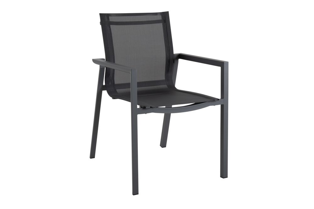 Krzesło ogrodowe Brafab Delia aluminiowe krzesło z podłokietnikami i tekstylenem, sztaplowane antracytowe